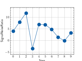 >>> # Example plotting multiple values >>> import torch >>> from torchmetrics.audio import SignalNoiseRatio >>> metric = SignalNoiseRatio() >>> values = [ ] >>> for _ in range(10): ... values.append(metric(torch.rand(4), torch.rand(4))) >>> fig_, ax_ = metric.plot(values)