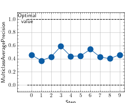 >>> # Example plotting multiple values >>> import torch >>> from torchmetrics.classification import MulticlassAveragePrecision >>> metric = MulticlassAveragePrecision(num_classes=3) >>> values = [ ] >>> for _ in range(10): ... values.append(metric(torch.randn(20, 3), torch.randint(3, (20,)))) >>> fig_, ax_ = metric.plot(values)