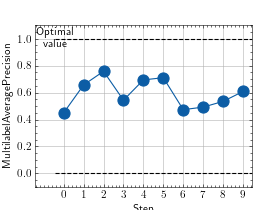 >>> # Example plotting multiple values >>> import torch >>> from torchmetrics.classification import MultilabelAveragePrecision >>> metric = MultilabelAveragePrecision(num_labels=3) >>> values = [ ] >>> for _ in range(10): ... values.append(metric(torch.rand(20,3), torch.randint(2, (20,3)))) >>> fig_, ax_ = metric.plot(values)