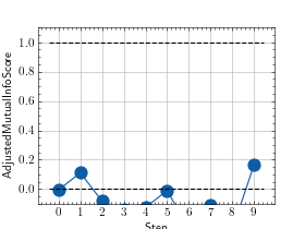 >>> # Example plotting multiple values >>> import torch >>> from torchmetrics.clustering import AdjustedMutualInfoScore >>> metric = AdjustedMutualInfoScore() >>> values = [] >>> for _ in range(10): ... values.append(metric(torch.randint(0, 4, (10,)), torch.randint(0, 4, (10,)))) >>> fig_, ax_ = metric.plot(values)