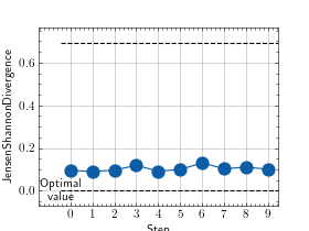 >>> from torch import randn >>> # Example plotting a single value >>> from torchmetrics.regression import JensenShannonDivergence >>> metric = JensenShannonDivergence() >>> metric.update(randn(10,3).softmax(dim=-1), randn(10,3).softmax(dim=-1)) >>> fig_, ax_ = metric.plot()