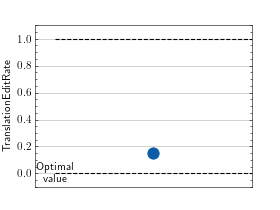 >>> # Example plotting a single value >>> from torchmetrics.text import TranslationEditRate >>> metric = TranslationEditRate() >>> preds = ['the cat is on the mat'] >>> target = [['there is a cat on the mat', 'a cat is on the mat']] >>> metric.update(preds, target) >>> fig_, ax_ = metric.plot()